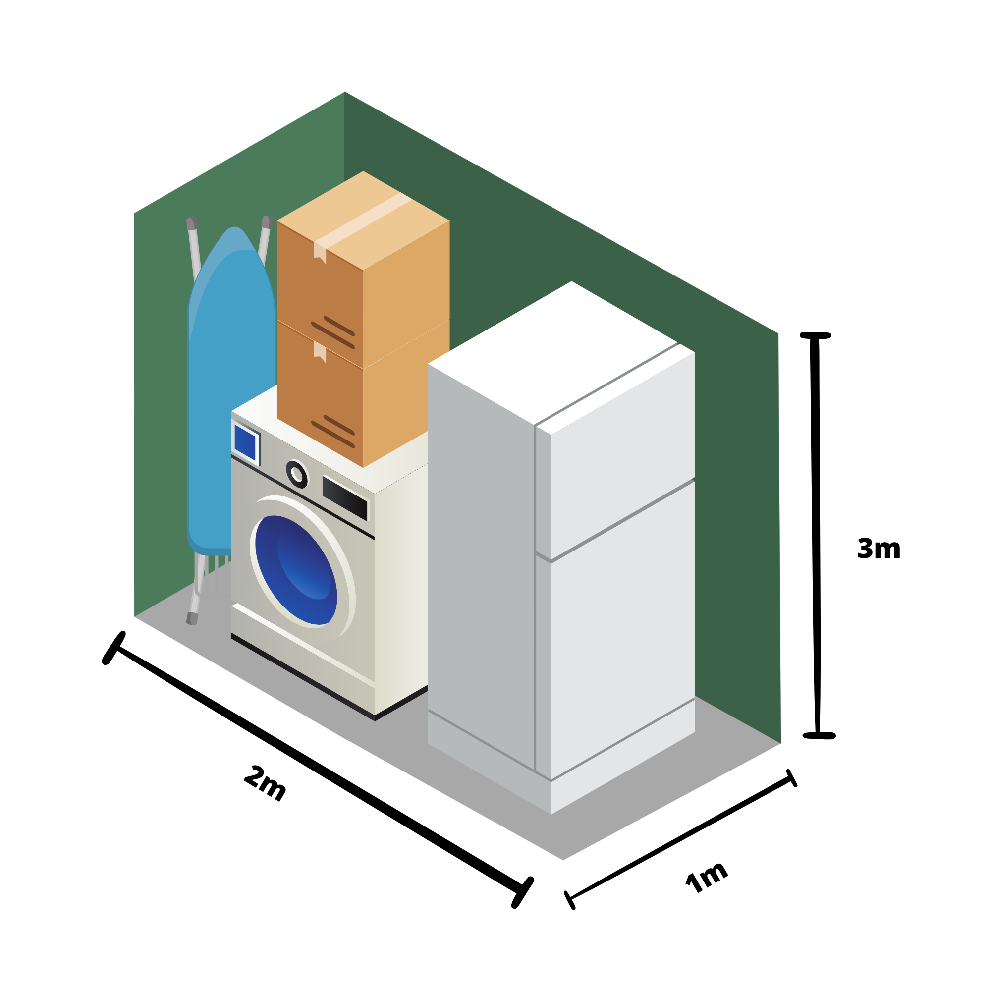 De grootte van onze box kan je vergelijken met een grote kleerkast met 2 deuren. Je hebt dus voldoende ruimte en hoogte om vlot meer dan 20 verhuisdozen te stapelen. De hoogte biedt ook de mogelijkheid om een rek te plaatsen zodat je de hoogte optimaal kan benutten.